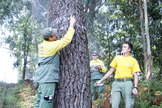 <사진2 : 포르투갈 소나무숲에서 감염목을 표시하는 모습. 경남신문 제공>